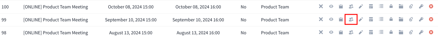 Click on the icon which resembles two people, shown in the list of meetings against the relevant meeting